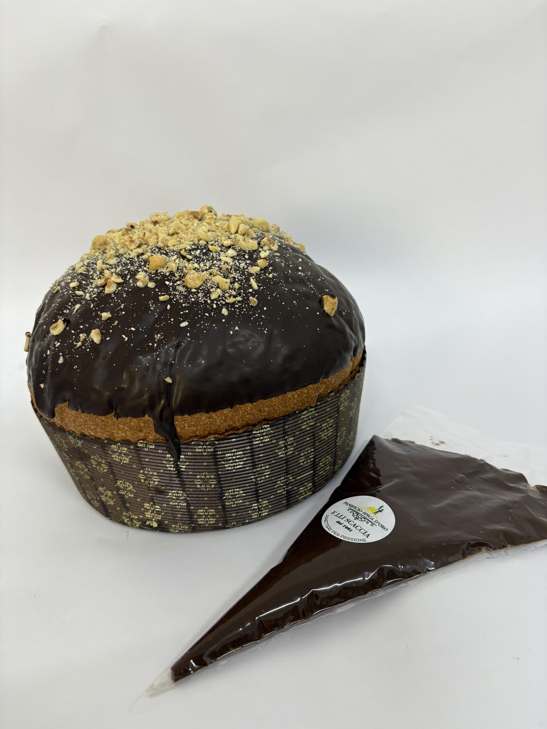 Ingredienti: farina di frumento, burro, zucchero, tuorli, latte, miele, emulsionante : mono e digliceridi degli acidi grassi ( E471) lievito naturale, sale, aromi ( pasta arancia e vaniglia). Sciroppo di fruttosio e glucosio. Cioccolato fondente.